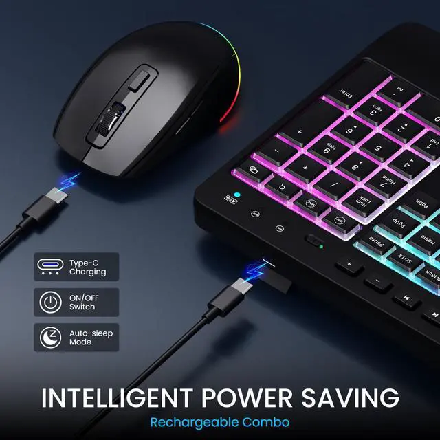Keyboard and mouse can stand by for half a year on one charge. Auto sleep mode and on/off switch can help extend battery life.