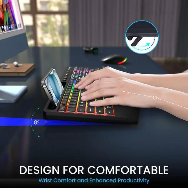 - Foldable tilt leg allowing anyone to adjust the angle and height of the keyboard to their preferences.