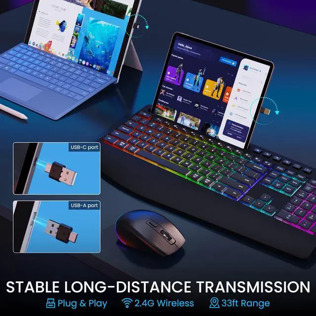 Wireless keyboard and mouse is designed for both Windows and Mac layouts. No Delays, effective up to 33ft of range.