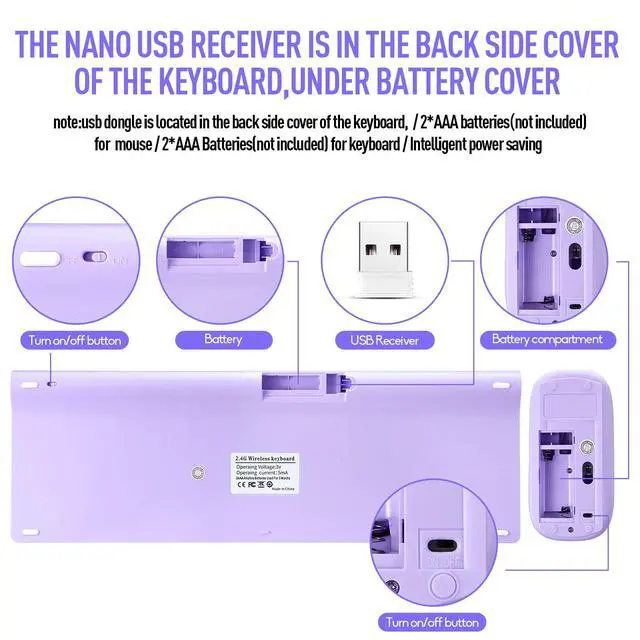 1.Note: The Nano receiver just snap in the storage of keyboard near battery compartment,