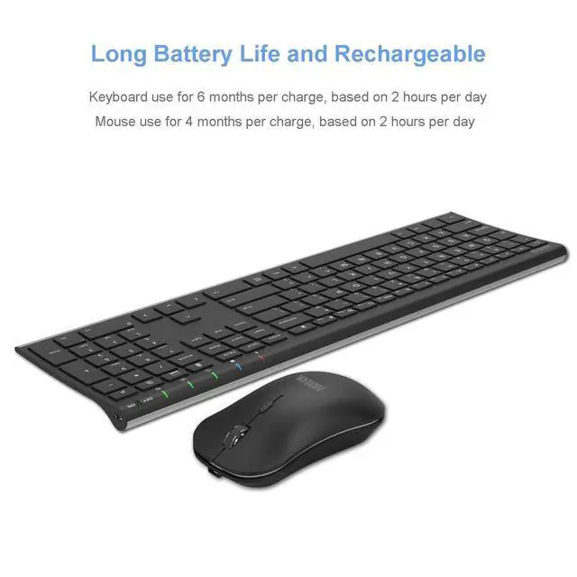 Built-in industry-high rechargeable Li-polymer battery provides 6-month for the keyboard and 4-months for the mouse use on a single charge. (based on 2 hours non-stop use per day)