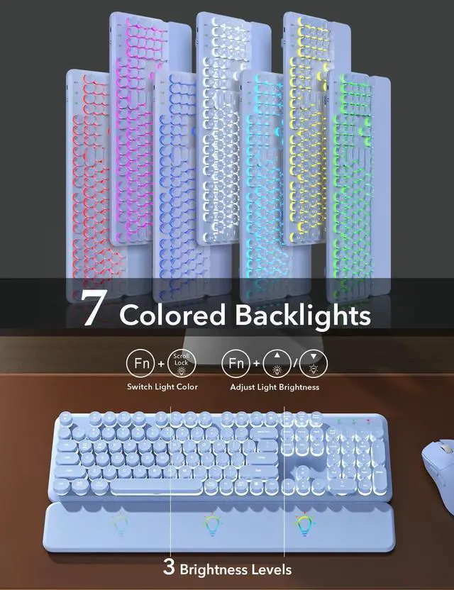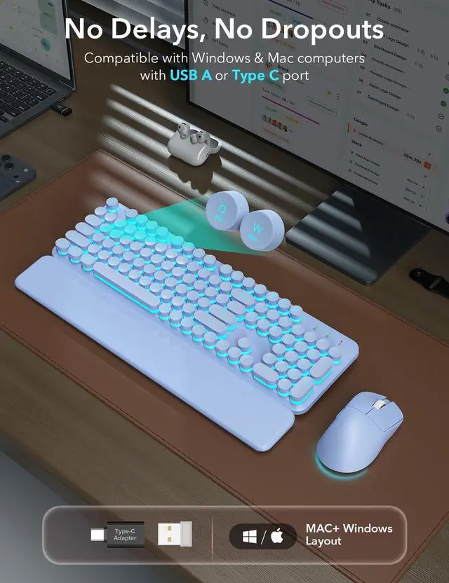 Round keys Keycaps Ergonomic Computer Keyboard with Wrist Rest, Sleep Mode, Full Size 2.4GHz USB Lag-Free Cordless Combo for Windows, Mac, PC, Laptop, Trueque keyboard wireless and mouse combo ergonomic keyboards computer usb portable silent teclado quiet pc y inalambrico key board low profile laptop for keybord black ergo cordless set office witeless full size with number pad keybored wirless raised keys Mac
