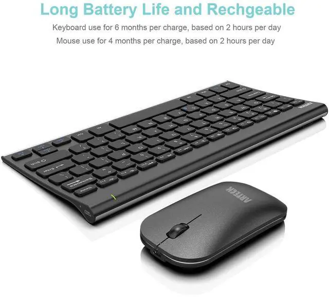 Built-in industry-high rechargeable Li-polymer battery provides 6-month for the keyboard and 4-months for the mouse use on a single charge. (based on 2 hours non-stop use per day)