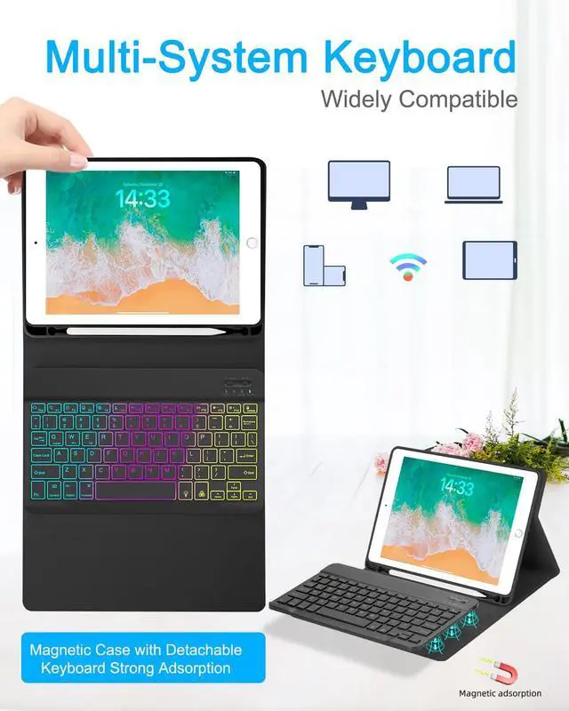 Click "FN" + Q/W/E, 3 systems can be switched to adapt to your tablet. The magnetic design allows the keyboard to be removed and moved at will