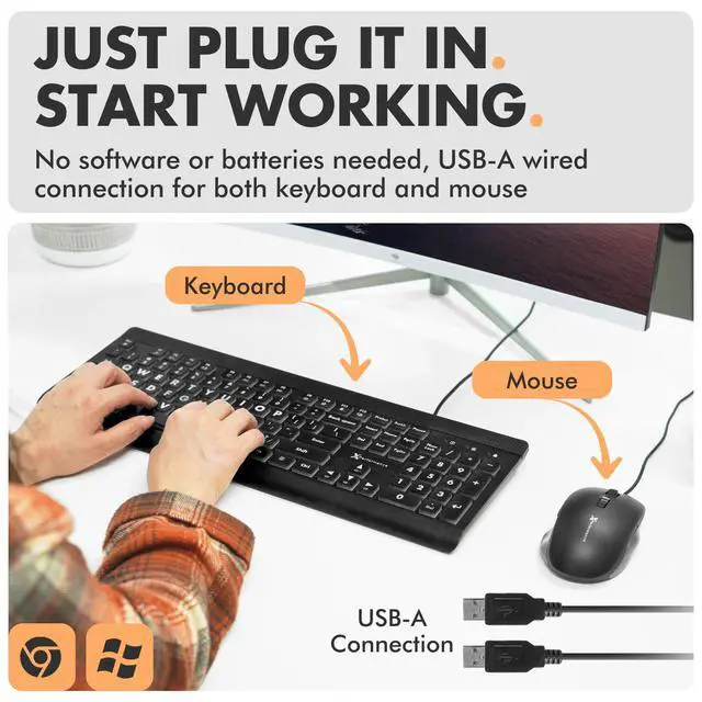 & : This large print keyboard needs no software, no drivers, no Bluetooth. USB into any Windows PC or Chromebook - typing in seconds, no setup headaches