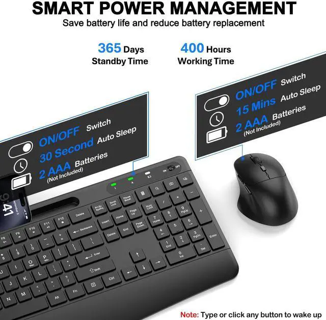 Ergonomic Keyboard and Mouse ComboThis ergonomic wireless keyboard and mouse combo features an ergonomic keyboard with a generous palm rest and adjustable tilt legs, which offers an optimal typing position to reduce wrist pressure. The ergonomic wireless mouse provides total comfort with a perfect handshake angle, contoured grips and premium matte finish, ideal for long hours of use without fatigue.