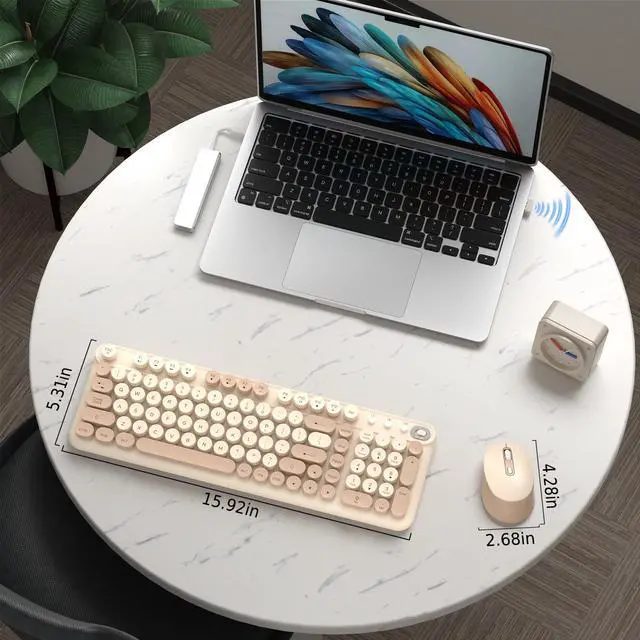 • Elegant Retro Design to Elevate Your Workspace: Step into a perfect blend of nostalgia and modern sophistication. Our typewriter-inspired keyboard features a striking dual-tone color block design that adds a touch of vintage charm to any desk. Paired with a sleek, matching mouse, this combo transforms your standard setup into a stylish and productive retro haven.