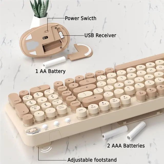 Wireless Keyboard and Mouse Combo, 2.4GHz USB Receiver, Plug and Play, Retro Full Size Typewriter Keyboard and Wireless Mouse for Computer, Laptop, Windows, Mac, and PC (Milk Tea)