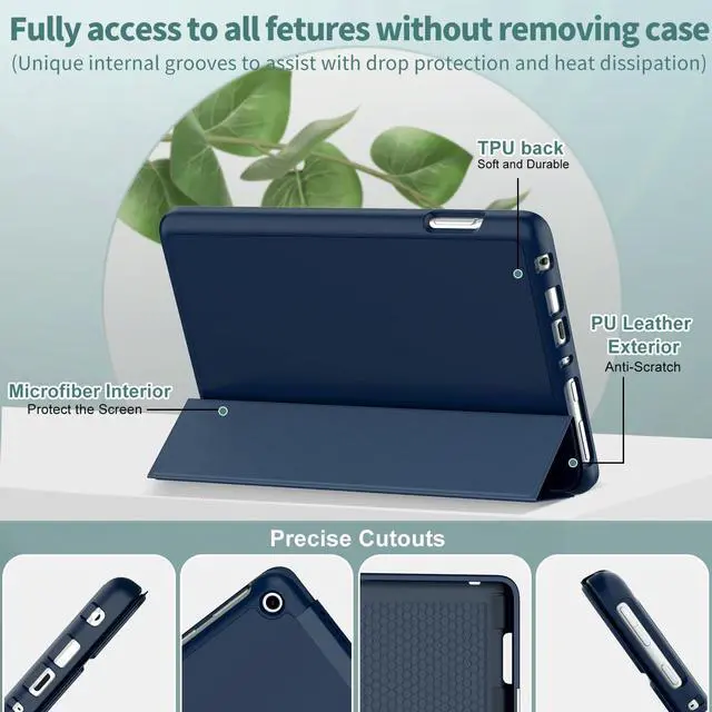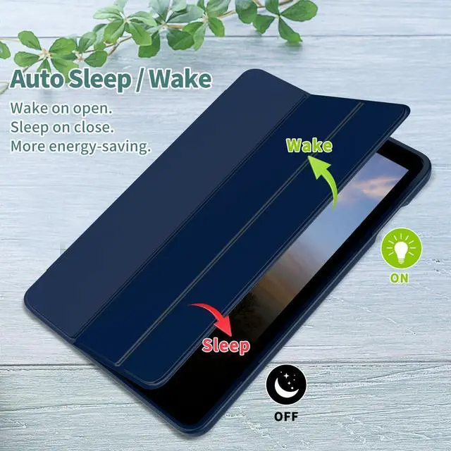 The built-in strong magnet automatically wakes up your tablet and flips it to sleep like a book. Let you use your tablet more conveniently. Save a lot of power to reduce charging frequency. Protect and extend tablet battery life.