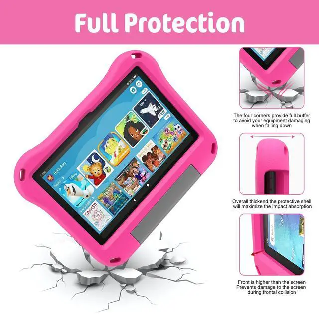 Fire HD 8 Case BUILT-IN KICKSTAND AND HANDLEFire HD 8 Plus Case BUILT-IN KICKSTAND AND HANDLE- Our Amazon Kindle Fire HD 8 Tablet Case built in foldable kick stand, makes your tablet with multi-angle watching, Convenient for typing or watching movies. The handle specially designed for kids little hands, super lightweight to make fire hd 8 tablet easy carry around by children