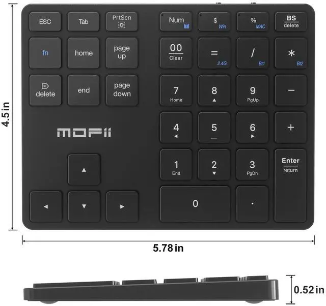 MOFII Bluetooth Number Pad 5.0 ConnectionProvides Bluetooth 5.0 technology wireless connection, the silent wireless numeric keypad supports connecting 3 devices at the same time. External 35-key full keyboard can expand your existing compact keyboard, and the working range can reach 33FT. Note: For laptops or desktop computers without Bluetooth function, you need to use a third-party Bluetooth adapter before use.(not included)