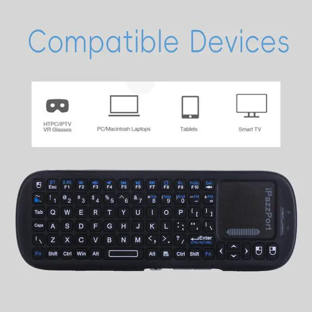 The iPazzPort Mini Wireless Keyboard with Touchpad is the perfect all-in-one solution for controlling your devices. Compact and lightweight, it combines a full QWERTY keyboard with a responsive touchpad, so you can type, scroll, and click without needing a separate mouse.