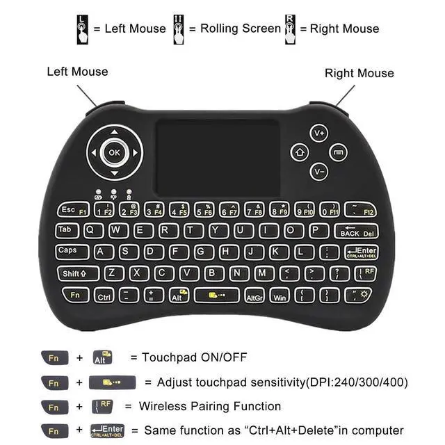 Perfect combo70 keys Wireless QWERTY keyboard + Touchpad,Key layout in line with the universal keyboard layout, fully functional, plug and play,White soft backlight design, use in the dark also unimpeded
