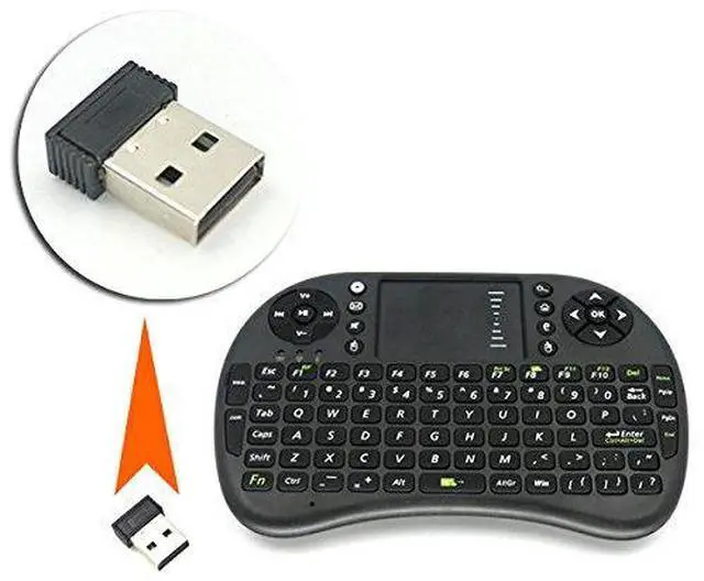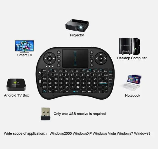 Note: The USB Receiver (dongle) is inside the keyboard as the picture shows. Your device need a USB port in order to operate with the mini keyboard.
