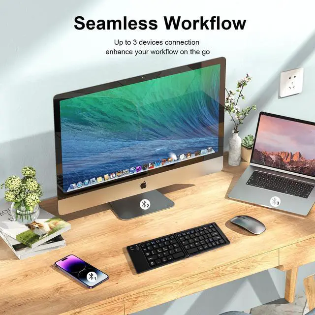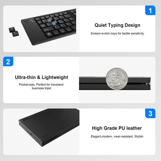 Pocket-Size Wireless Keyboard Only 5.53-ounce palm-sized keyboard can be folded into your pocket or backpack to carry around. Just press the CONNECT button to quickly pair with your devices. Automatic on/off and reconnection design makes operation more convenient. With a riwezox folding keyboard, you can start to write down your ideas anywhere quickly!