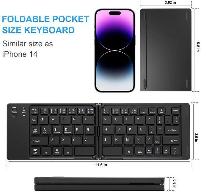 Foldable Portable KeyboardWith a travel size portable keyboard that easily connects to bluetooth enable device you need to use it on, you can work or relax when go out to different place like cafe or libraries. Warm reminder: Due to the small compact keyboard layout, it may cause inconvenience to your typing habits. Our design focuses on providing convenience for brief use on the go, making it especially suitable for mobile phone and tablet users.