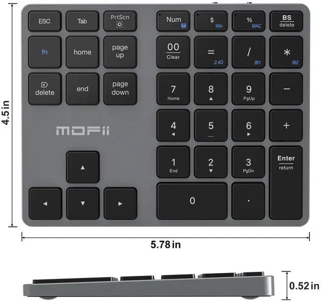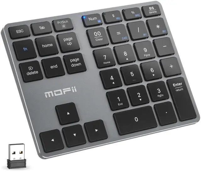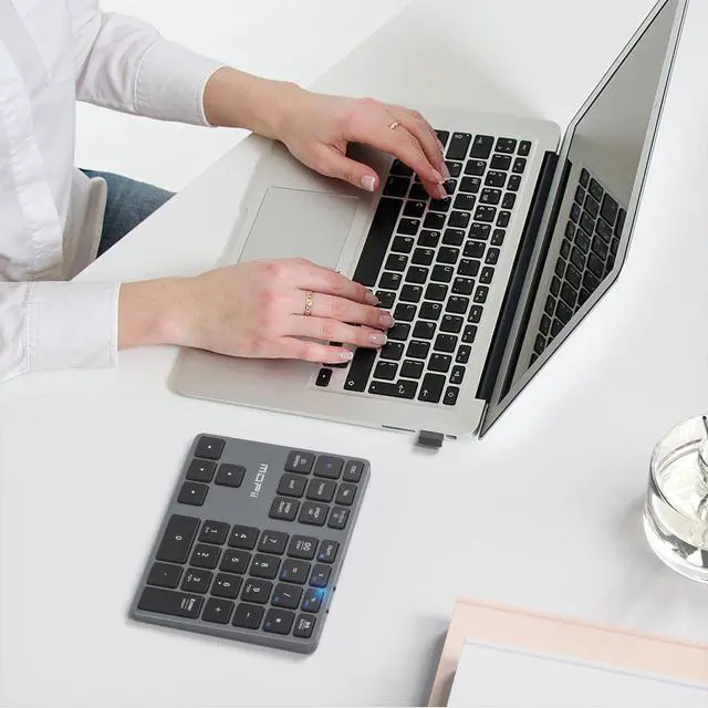 MOFII Bluetooth Number Pad 5.0 ConnectionProvides Bluetooth 5.0 technology wireless connection, the silent wireless numeric keypad supports connecting 3 devices at the same time. External 35-key full keyboard can expand your existing compact keyboard, and the working range can reach 33FT. Note: For laptops or desktop computers without Bluetooth function, you need to use a third-party Bluetooth adapter before use.(not included)