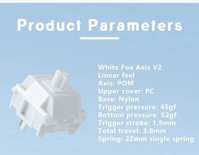 35x White Fox Axis V2 switches | Theme-inspired packaging | Compatibility guide