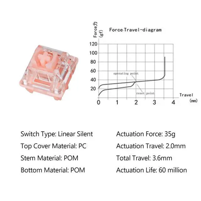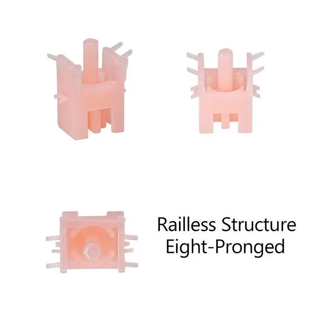 New Design: The switch stem eliminates the traditional guide rail structure and adopts an eight-pronged bottom-contact design, which improves the smooth and linear feel and greatly reduces the noise of pressing