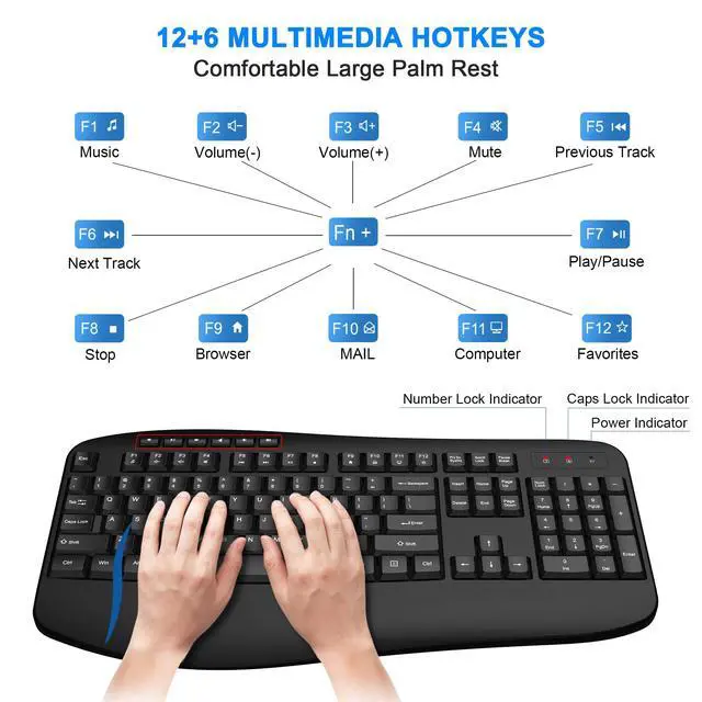Full Size Efficient Combo: The full-sized wireless keyboard with number pad has 12+6 multimedia shortcut keys to improve your work efficiency. Wireless mouse has three customizable DPI levels 800-1200-1600, which can ensure optimal precision for all your tasks