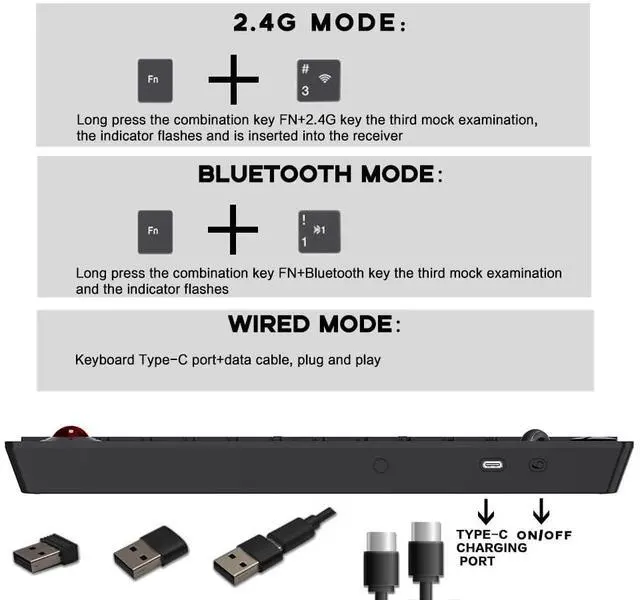 Three Modes Connectivity Connect via Bluetooth 5.4, 2.4GHz wireless, or USB-C cable. Supports up to 4 devices simultaneously for efficient multi-tasking across Windows, Mac, iOS, Android htpc TV and Linux systems.It can also be well applied in industry.