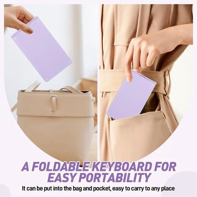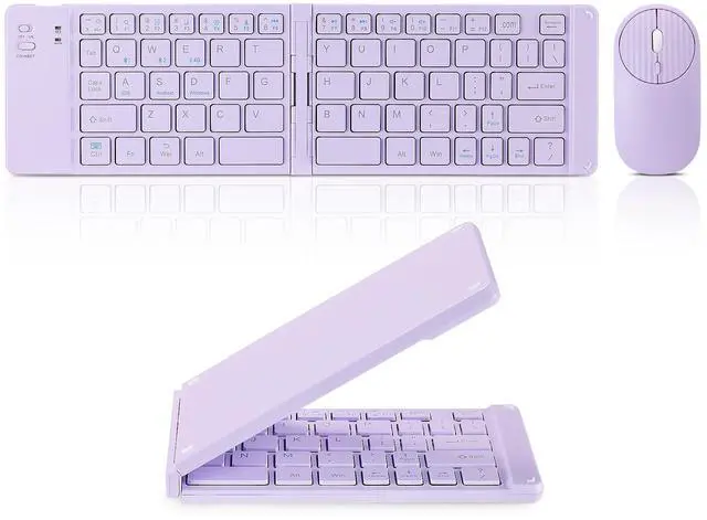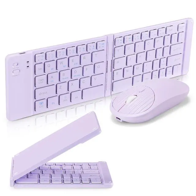 Foldable Mini Rechargeable Bluetooth Keyboard and Mouse Combo, 2.4G Wireless and Bluetooth,(Sync Up to 3 Devices), Ultra-Slim Travel Folding Keyboard for iPhone iPad Mac Android Windows iOS(Purple)
