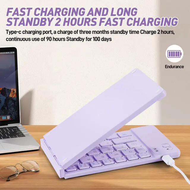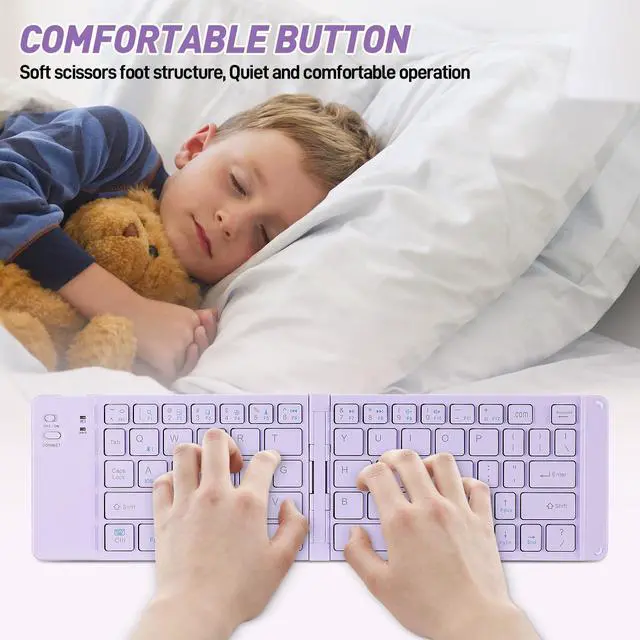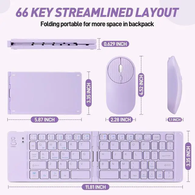 Multi-System Compatible,this folding keyboard mouse combo supports connect up to 3 devices,Its widely compatible with Windows, Android, iOS, Mac OS, perfect for laptops, desktops, Phones and more devices, the low-profile scissor keys give you excellent feedback and stability, you can type the key quietly.
