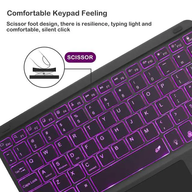 This Bluetooth keyboard with touchpad has an ultra-slim design with a thickness of 0.27 inches and a keycap design that fits the size of your fingers. Not only is it easy to carry and travel with, but the experience of using it is also more comfortable.
