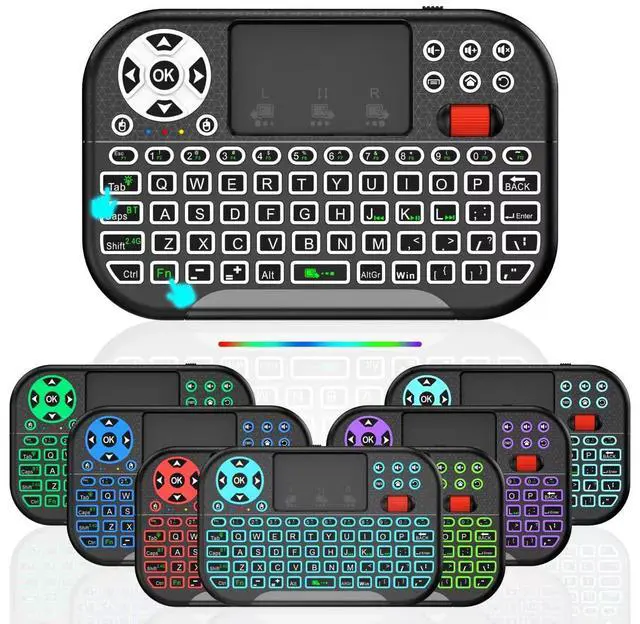 M2 Mini Wireless Keyboard with Touchpad Mouse Combo, Portable Bluetooth/2.4Ghz Mini Keyboard with 7 Colors RGB Backlit, Rechargable Battery for Android Box/Smart TV/Pad/PC, HTPC, Tablet