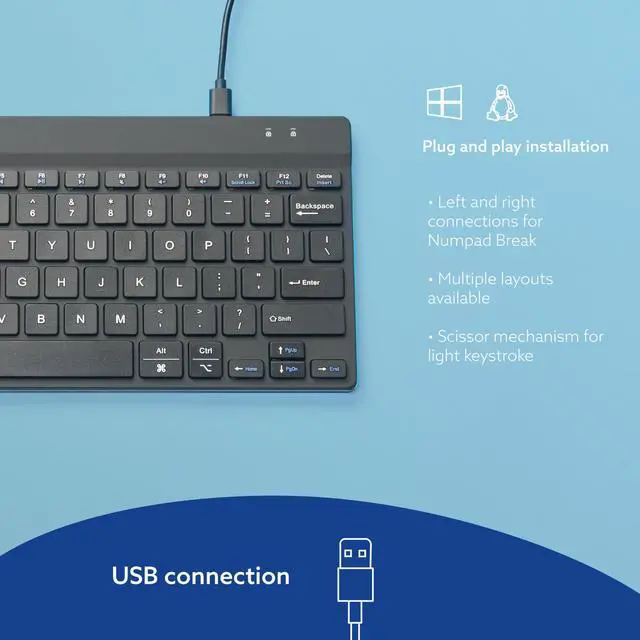 R-GO COMPACT BREAK KEYBOARD, QWERTY (US), BLACK, WIRED