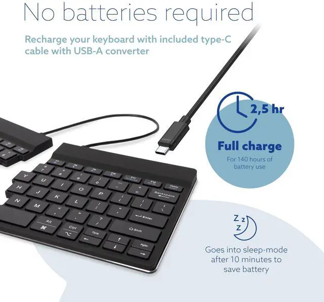 R-GO ERGONOMIC KEYBOARD, SPLIT KEYBOARD WITH BREAK LIGHT, QWERTY (US), BLUETOOTH