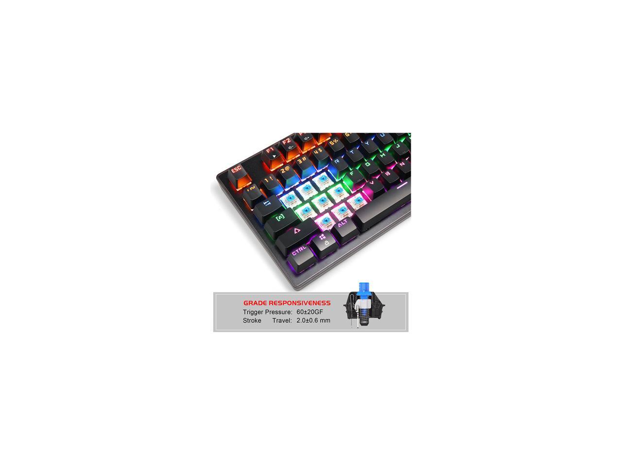 MK1 87 Keys Mechanical Keyboard LED Breathing Light Backlit Anti-ghosting Compact USB Wired Mechanical Gaming Keyboard with Blue Swithes for PC Laptop Mac