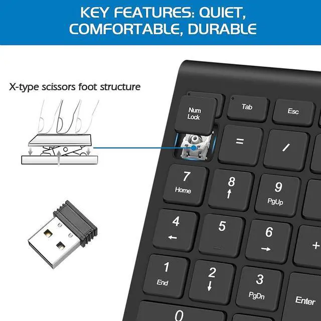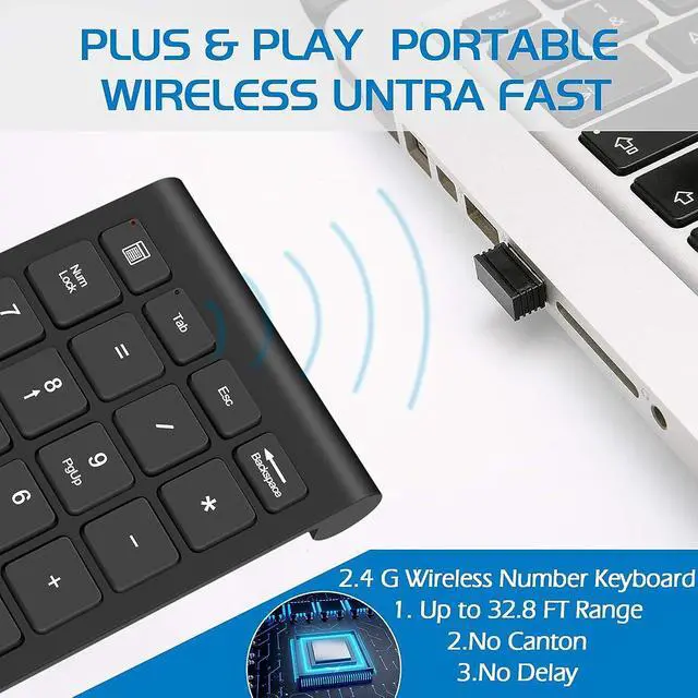 - 2. Portable And Easy To Use: Our Number Pad Is Only 87G. And Numeric Keyboard Is Work By 2.4Ghz Wireless Technology, Plug And Play. You Can Just Plug The Receiver Into A Usb Port . No Device Drivers Needed, No Delays And Dropouts, Fast Data Transmission. The Maximum Working Range Up To 32.8 Ft.The Receiver Is Inserted In The Battery Compartment Of The Keyboard