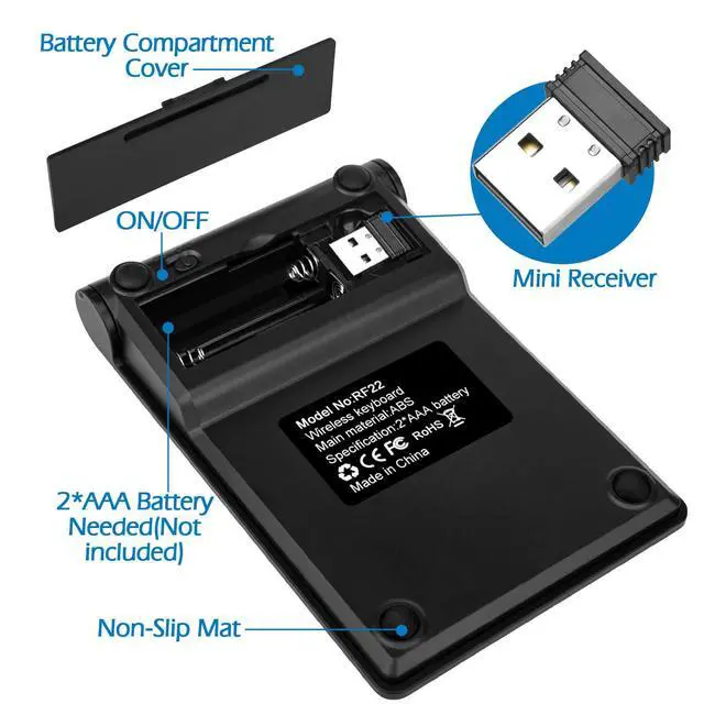 - 3. Mute And Touch Comfortable: Made Of High Quality Abs Material Which Offer Great Comfortable Touch And Precise Control, Good Resilience Fast Response And Reduce The Press Sound. It Also Has Auto Sleep Function, Lower Power Consumption, Reflect Energy Saving. Press Any Key To Awake Up The Keypad. Power Supply By 2 X Aaa Battery ( Not Included )
