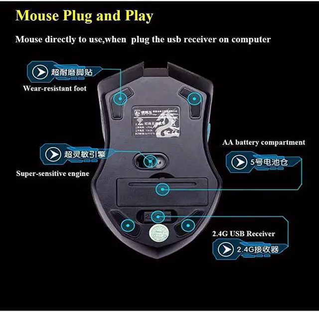 Receiver More Features: -High quality and Brand new. Whirlwind Streamline, Dual-Spring big spaces. -Subtle ergonomic design, the most subtle touch, offer the most comfortable gaming environment. -Anti-skid, with stable stand design, you can adjust the keyboard height. -The keycap using laser engraving technology, durable wear does not fade. -With Ultra-Wearable Laser Blue Chacacter, even at night to experience the game is quite suitable. -Unique S-Shaped ergonomic design, can effectively reduce fatigue and increase comfort. -Mouse Standard 6 keys and keys of roller wheel up and roller down can self-defined key function. -Mouse 4000FPS frames per second ( 32 megapixels per second) -Mouse