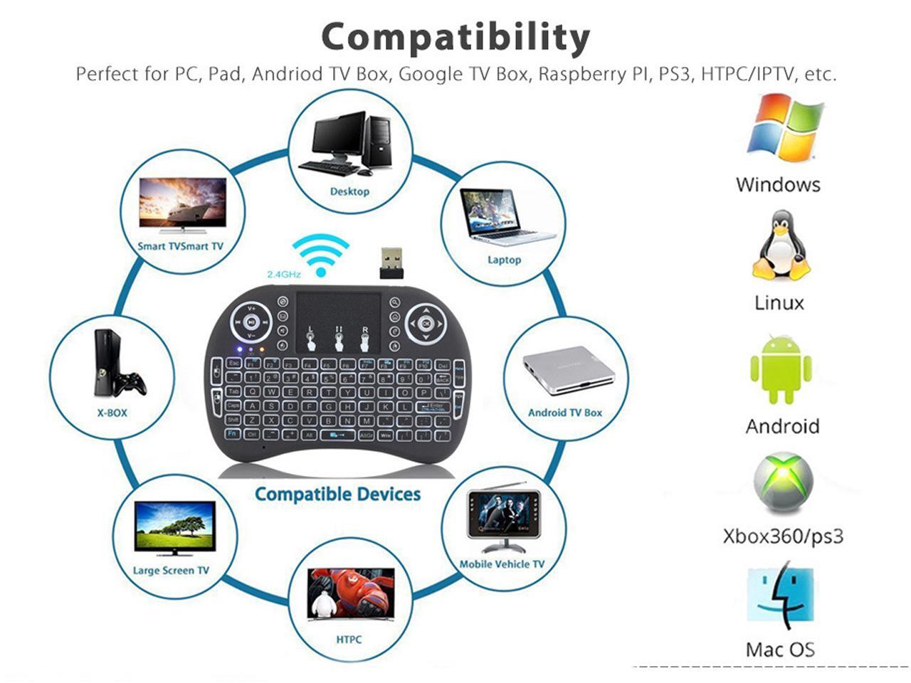 - Lightweight remote keyboard controller: You can use this multifunctional keyboard to change the slide and screen options lying comfortably on the sofa to freely control the TV, laptop, tablet and projector.