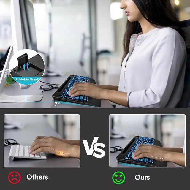 ERGONIMIC -DESIGN:Extra-large keyboard with wrist rest and fold-able stand design provides support for your rest and reduces twisting.
