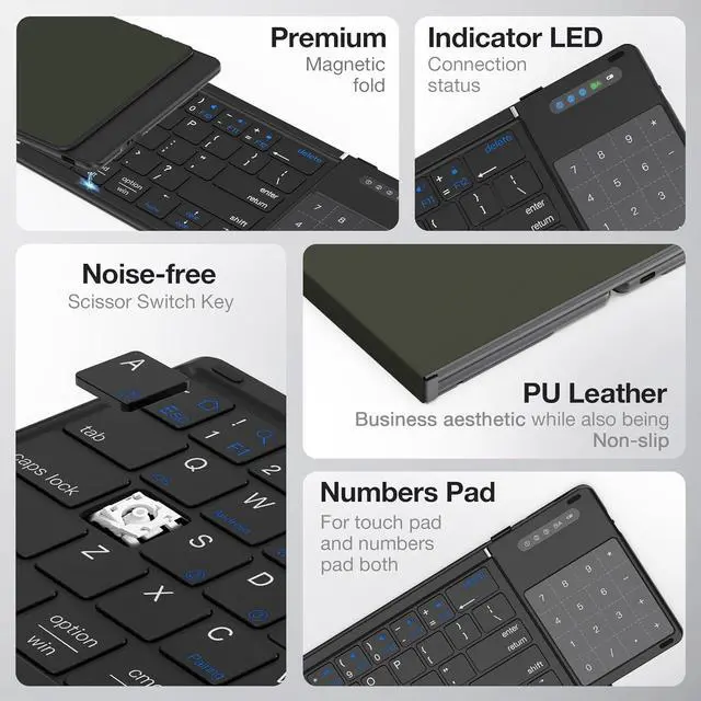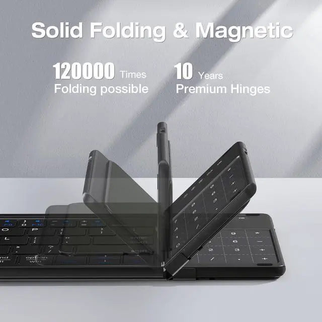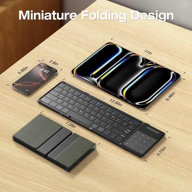 Compact & Foldable Design Designed for portability, MOSHOU foldable keyboard with touchpad folds down to 7.28 x 4.13 inches and weighs only 250g. The compact layout makes it perfect for travel, work on the go, or minimalist setups.