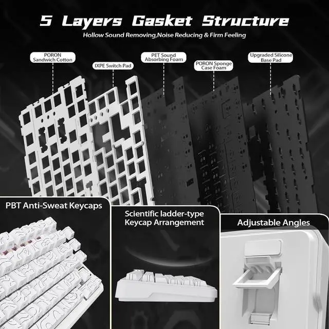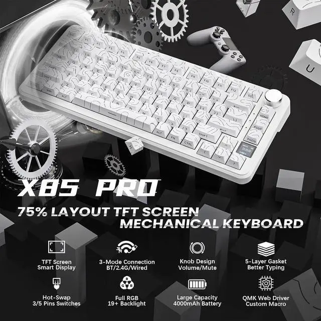 [Premium Engineering Gasket structure & Customizable Typing Mastery] Built with a black immersion gold PCB,the X85 pro prevents signal lag common in cheaper keyboards. While 5-layer paddings of the gasket structure and 1.2 mm PCB single key slotting technology reduce vibration and add stability unlike common keyboards. When typing,more smoother and quiter.