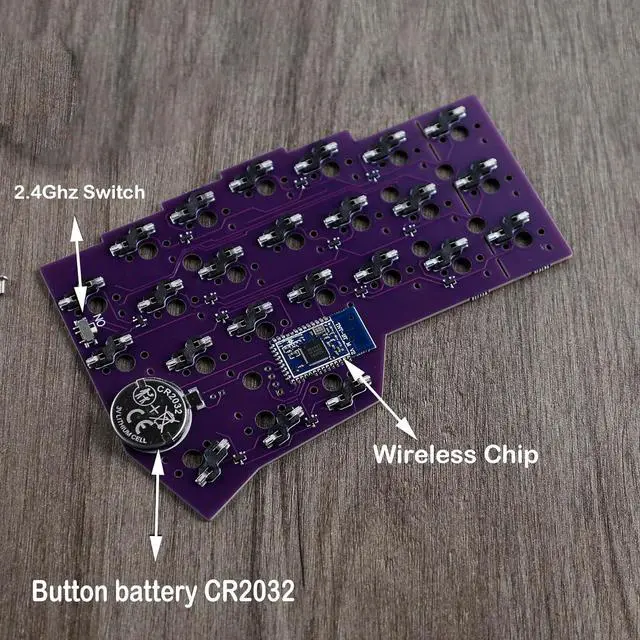 Bottom PLA case × 2 +Top PLA plate × 2 + Low profile Hotswap PCB × 2 + Button Battery × 2 + 2.4 Ghz Connectors