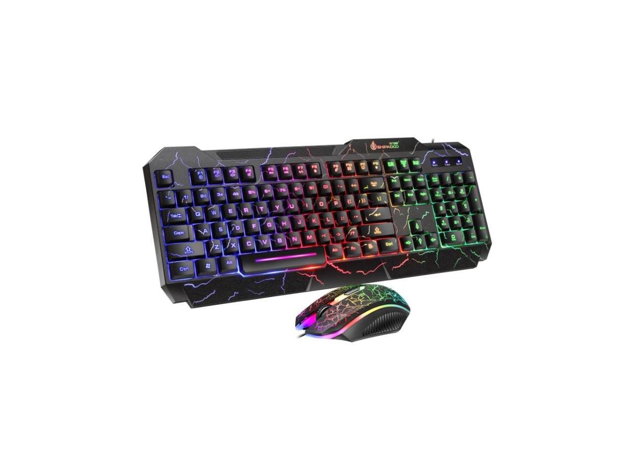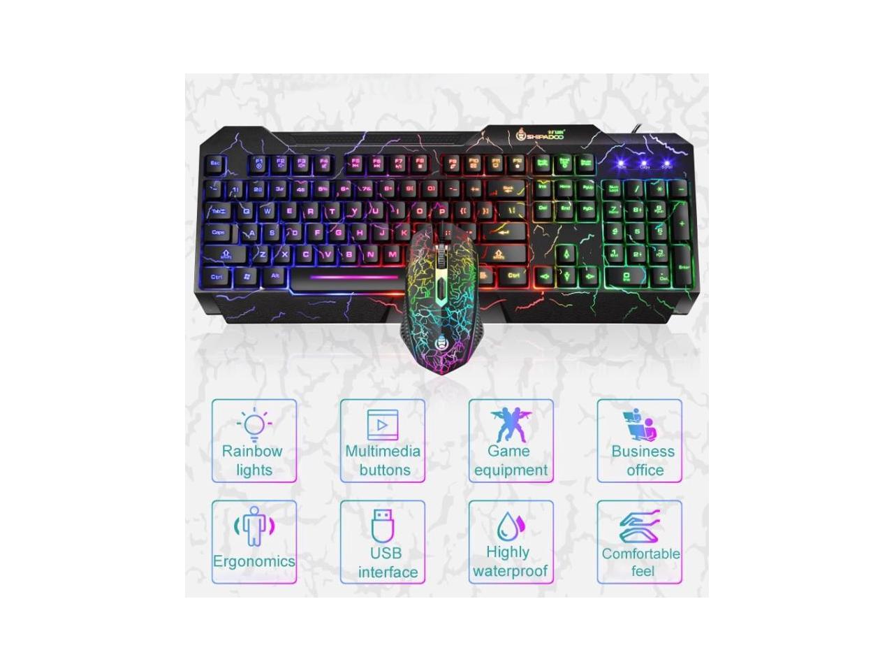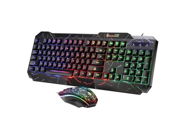 SHIPADOO D620 104-key Wired RGB Color Cracked Backlight Gaming Keyboard Mouse Kit for Laptop, PC
