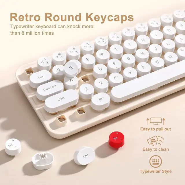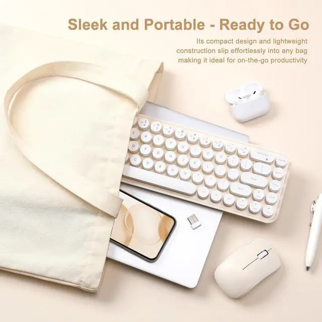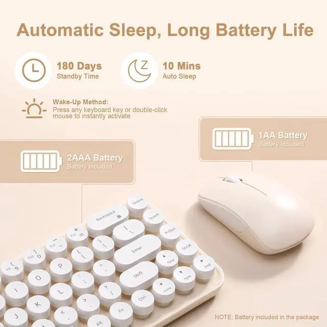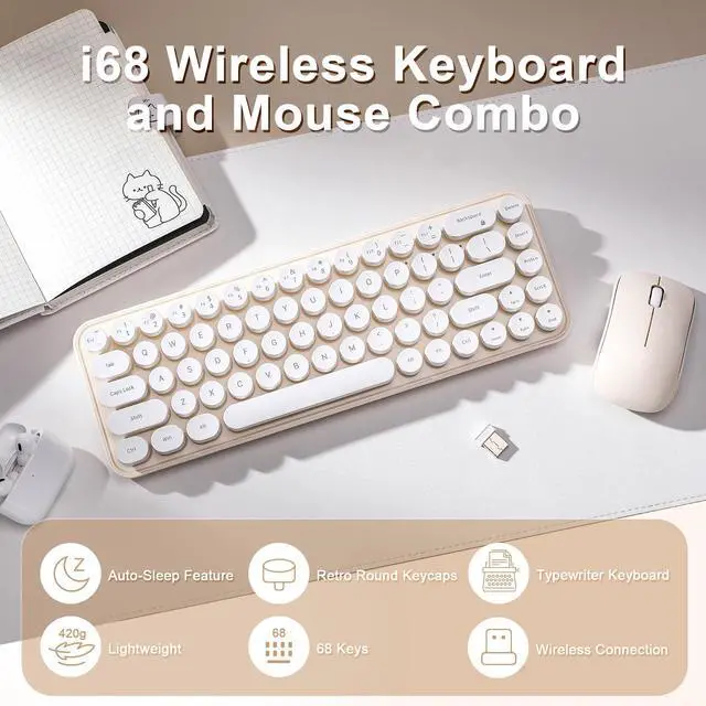 "Perfect Gift & Versatile Use Whether for school, office, or home decor, this vibrant set is a unique surprise for tech lovers. Packed with retro vibes and practical features, its a must-have for anyone seeking style and comfort! Whats Included: 1× Retro Wireless Keyboard (requires 2×AAA batteries, included) 1× Ergonomic Wireless Mouse (requires 1×AA battery, included) 1× USB Receiver User Manual Note: Keyboard and mouse share one USB receiver ."