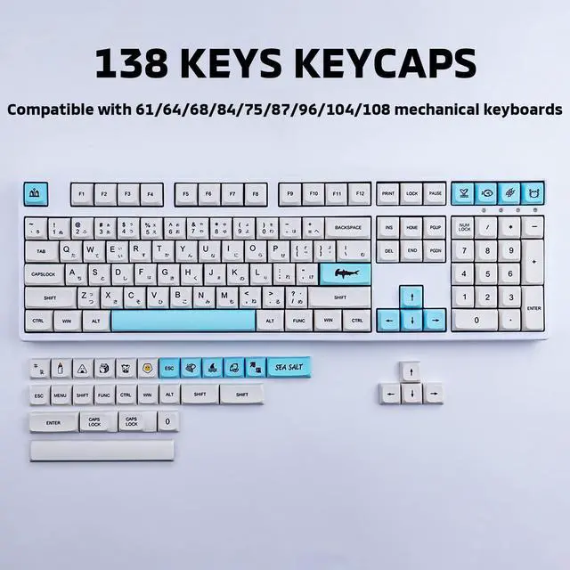 Vszerda PBT Keycaps 138 Keys Sea Salt Milk Keycap XDA Profile Dye-Sublimation Japanese Key caps Cute Keycaps for Cherry MX Switches Mechanical Keyboard