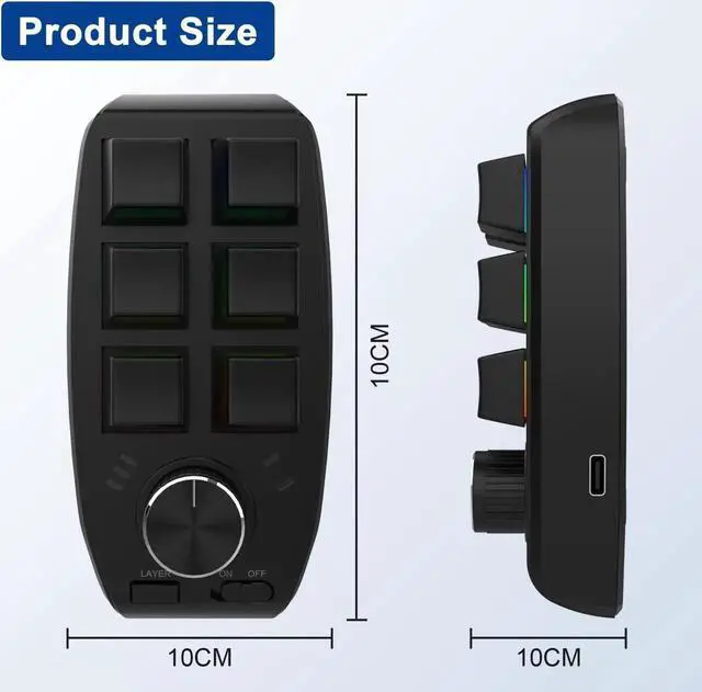2. Knob function: 1 X 360 degree adjustable knob, which can be used to set functions such as page turning, zoom in/out, up and down song switching, volume increase, volume decrease, pause, play, etc., press ON/OFF/LAYER, and other required single key or combination key functions. It is easy to operate and carry. It is a good helper for office, design, leisure and entertainment.