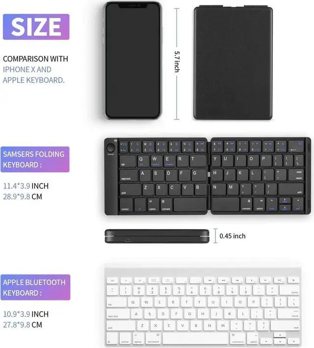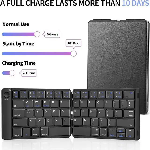 The Bluetooth keyboard works seamlessly with iOS, Android and Windows. Maintain a stable connection and provides fast response to devices within 10 meters of operation. Compatible with a variety of devices, including Apple iPad Air, iPad 4/3/2, iPad Mini 4, iPhone X/8/7/6, Galaxy Tab, Galaxy Note, Surface, Amazon Kindle, and other Bluetooth devices.