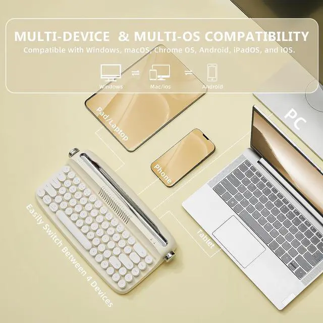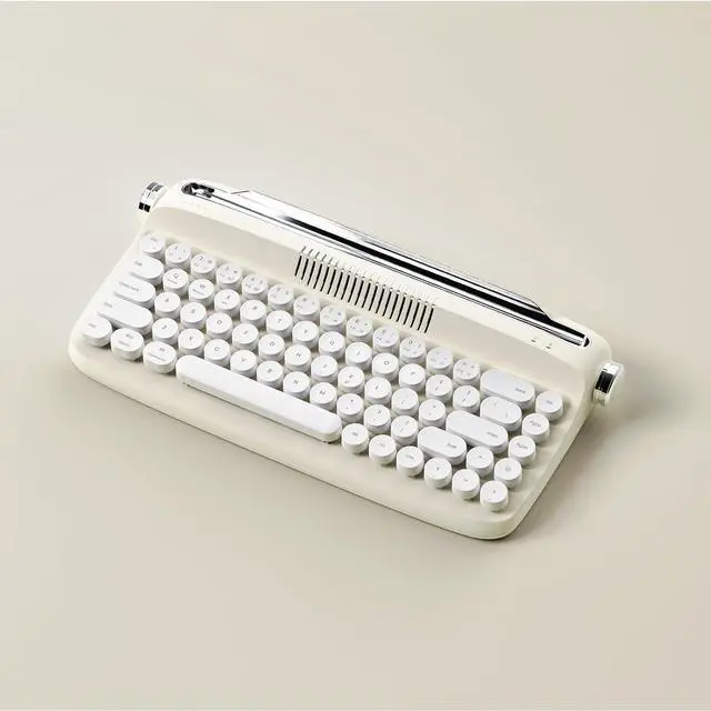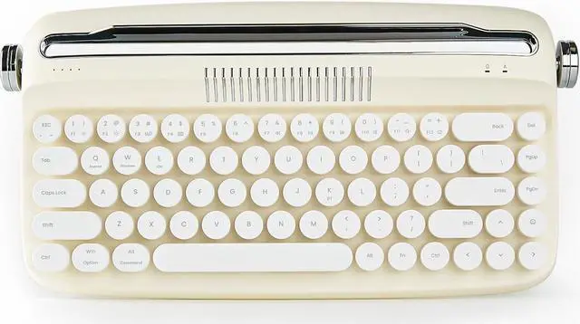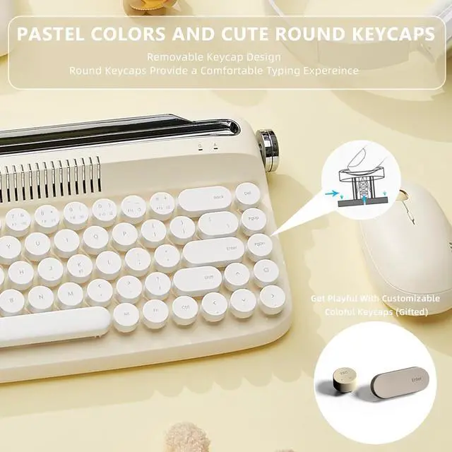 • Upgraded wireless retro keyboard adds knob control, rechargeable battery and Bluetooth & wired connections. The colorful keyboard offers a unique blend of vintage charm and modern typewriter functional, with its compact layout, retro keyboard typewriter style, pastel colored keyboard with round keycaps.