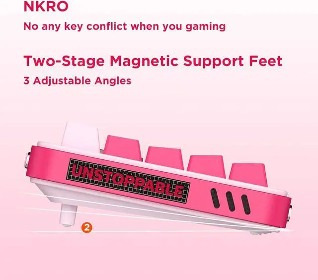• 2 adjustable magnetic support feet gives the keyboard 3 level angles.