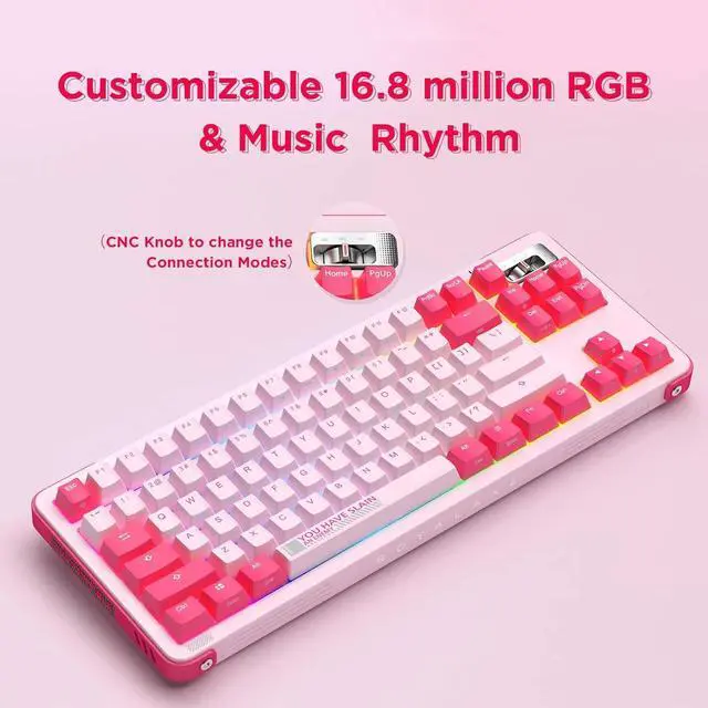 87 Keys TKL Hot Swappable Wireless Mechanical Keyboard with Metal Knob, RGB Backlight, Double Shot PBT Keycaps for Gamers/Mac/Win (TTC Speed Silver V2,Candy Pink)