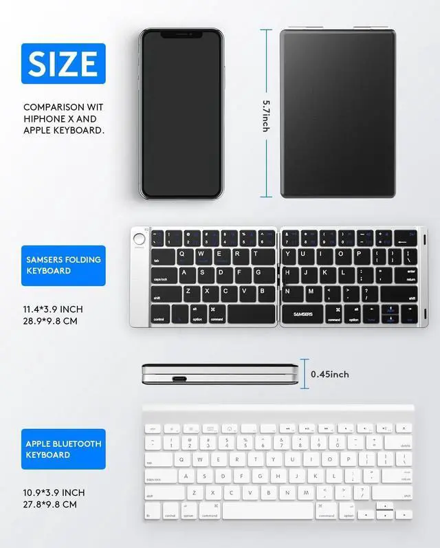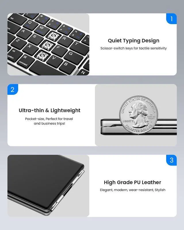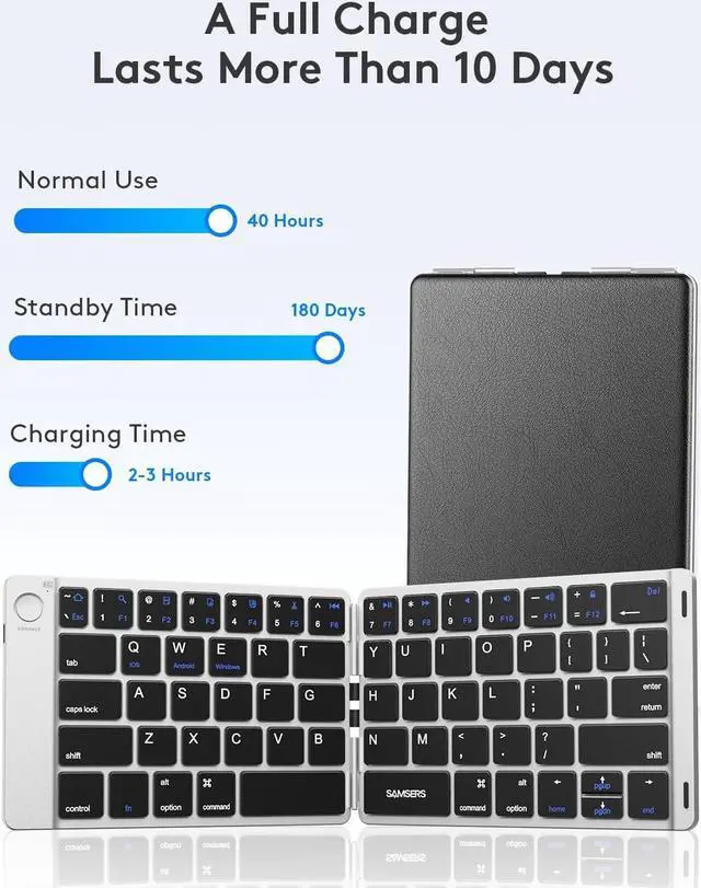 The Bluetooth keyboard works seamlessly with iOS, Android and Windows. Maintain a stable connection and provides fast response to devices within 10 meters of operation. Compatible with a variety of devices, including Apple iPad Air, iPad 4/3/2, iPad Mini 4, iPhone 15/14/13/12/11 etc., Galaxy Tab, Galaxy Note, Surface, Amazon Kindle, and other Bluetooth devices.