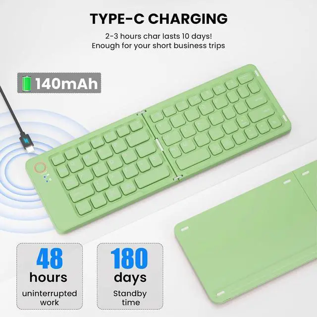 Portable design with modern style. Its great touch and clean look make it perfect for your laptops and desktops. The built-in lithium battery can work continuously for 40 hours or stand by for 180 days. One full charge is enough for your short-term business trip or vacation.